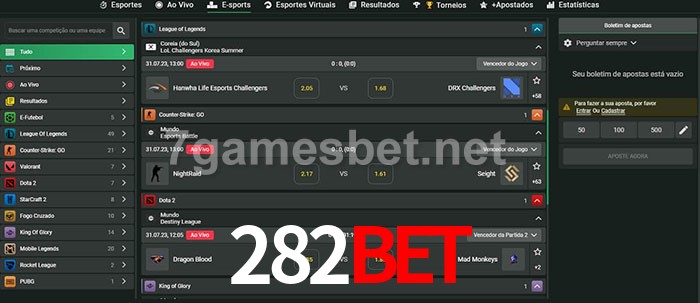 A aposta 282Bet oferece aos jogadores a experiência mais conveniente de apostas em eSports!
